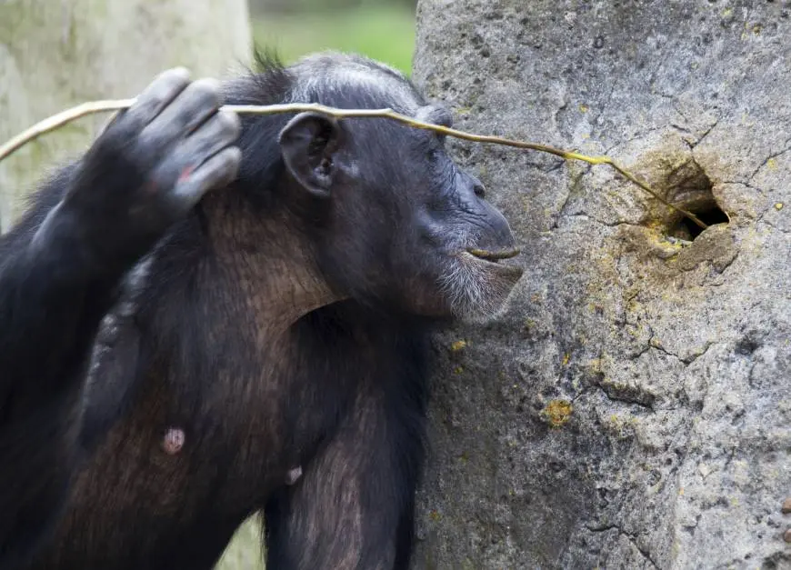 Chimpancé capturando termitas